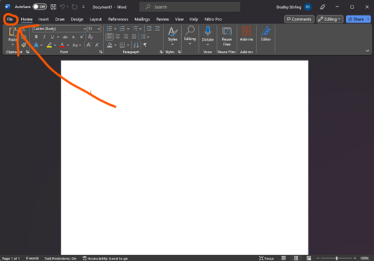 1. Open any Office app, such as Word or Outlook. If using Word, open a blank document.