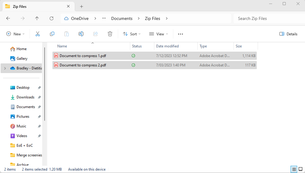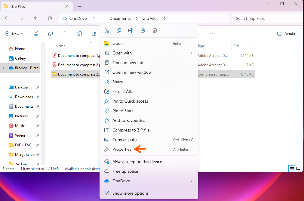 2. Right click on the file(s)/folders. Select 'Compress to Zip File'.
