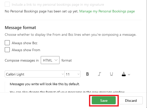 5. Save your signature and settings by clicking Save at the bottom of the page.